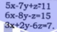 2xy - y + 3z = 9;x + y +z = 6 and x - y + z = 2.