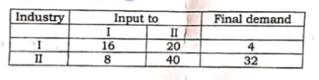 For the following translation matrix, find the gross output for each industry for the final demand 18 and 44 units respectively