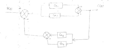 Obtain the transfer function for the block diagram shown in the following figure, using block diagram reduction method.