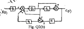 Obtain the transfer function for the block diagram shown in Fig. 2(b), using block diagram reduction method.