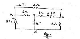 (a) Verify the reciprocity theorem in the circuit shown in fig. 3, w.r.t. the voltage source and the current I.