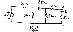 (b) Using superposition theorem determines the current through the branch AB, for the circuit shown in fig. 4.