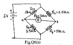 An unbalanced Wheatstone bridge given in Fig.Q6(a). Calculate the current through Galvanometer.