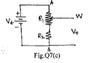 A displacement transducer with a shaft stroke of 3.0 in. is applied to circuit of Fig.Q7(c).The total resistance of potentiometer is 5 . The applied voltage Vt is 5V when the wiper is 0.9 in. from B, what is the value of output voltage?