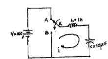 /In the circuit shown in the following figure, the switch K is changed from position A to B t=0. After having reached steady state in position A. Find i, at .