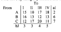Hindustan construction company needs 3, 3, 4 and 5 million cubic feet of full at four earthen dams-sites in Punjab. It can transfer the fill from three mounds A, B and C where 2, 6 and 7 million cubic feet of fill is available, cost of transporting one million cubic feet of fill from mounds to the four sites in lakhs are given in the table.