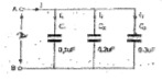 Three capacitors of capacitances 5.4 and 3 fare respectively are connected with the first and second in series and the third in parallel with them. Find the capacitance of the combination.