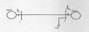 A system consists of two plants connected by a transmission line as shown in figure 1. The load is at plant 2. If a load of 125 MW is
