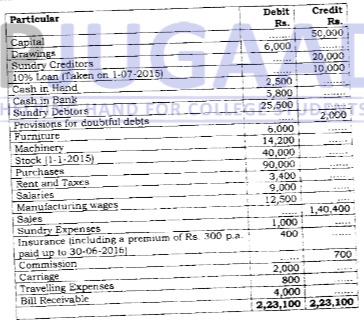 Adjustments:- (a) Stock on 31-12-15 was Rs. 38.000