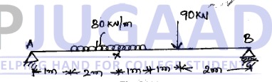 Draw SFD and BMD for the propped cantilever beam loaded as shown in Fig. Q6(a). Use consistent deformation method.