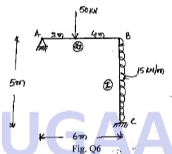 Analyse the frame shown in Fig. Q6 by using Flexibility matrix method. Use system approach. Draw BMD.