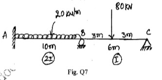 Analyze the continuous beam shown in Fig. Q7, by three moment theorem. E is constant.Draw the BMD and SFD.